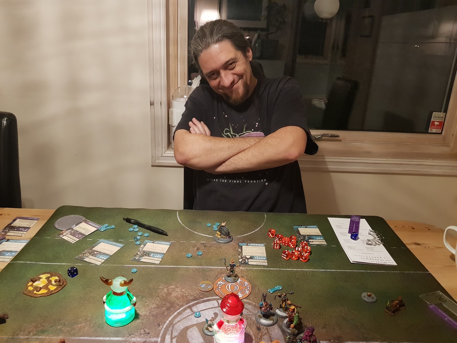 I have been having a bunch of friends over for my annual boardgaming birthday party. I managed to squeeze in a game of Guild Ball between the Dominion, Kingdomino, Splendor and X-Wing games. For this game, I play Corsair against Obulus.